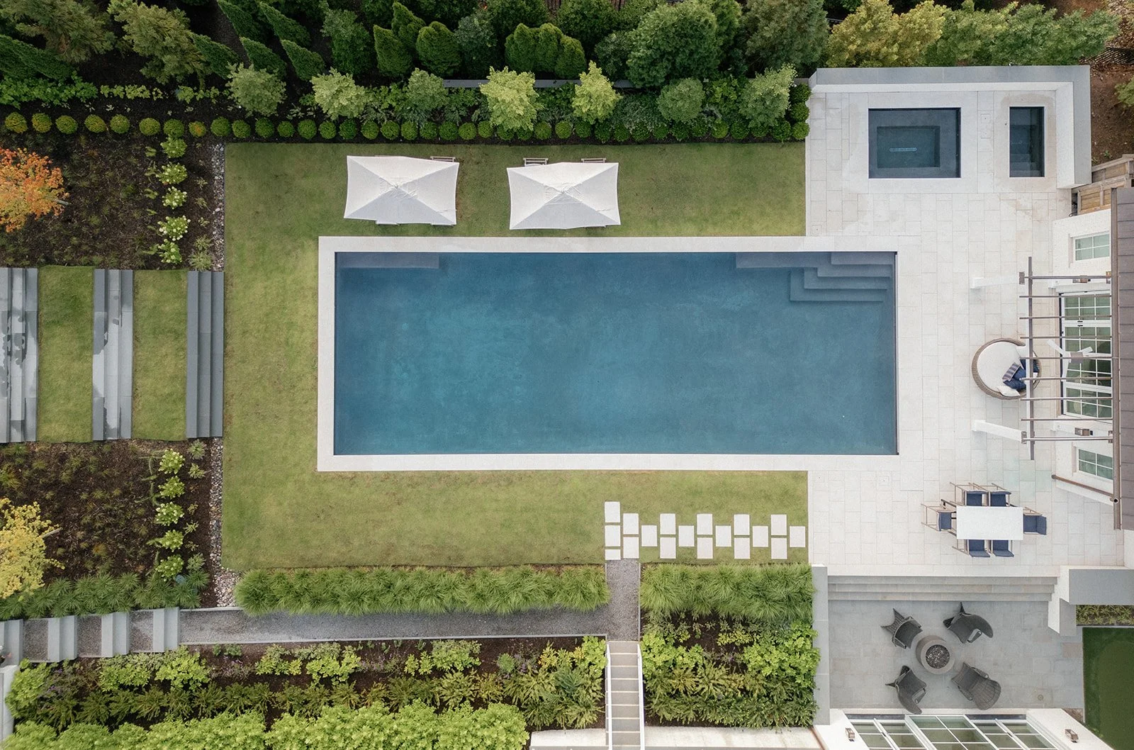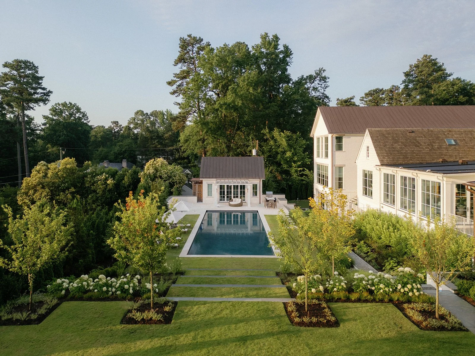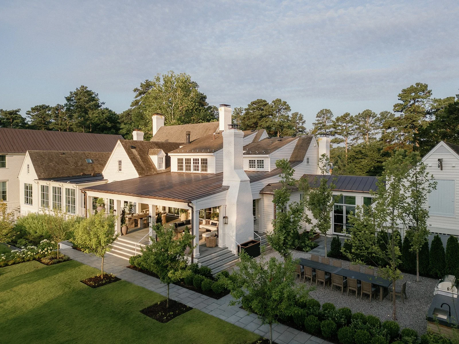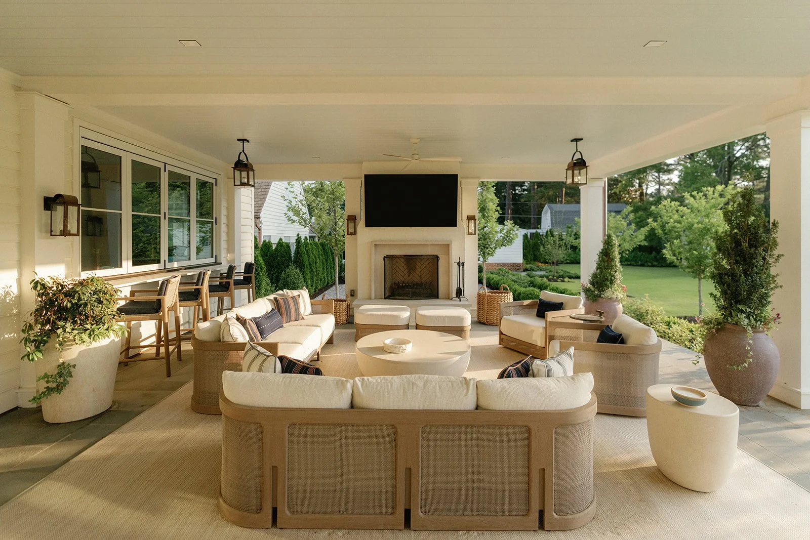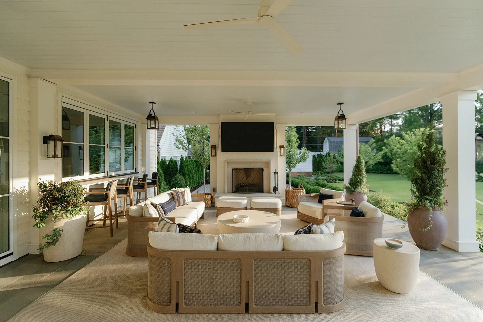 The architecture opens the house to the landscape. Terraces, covered porches, and a reimagined pool area frame the home without overwhelming it. We partnered with Waterstreet Studio, a landscape architecture firm, to shape these exteriors with subtlety and purpose, bringing cohesion to every view and turning the outdoors into a true extension of the home.