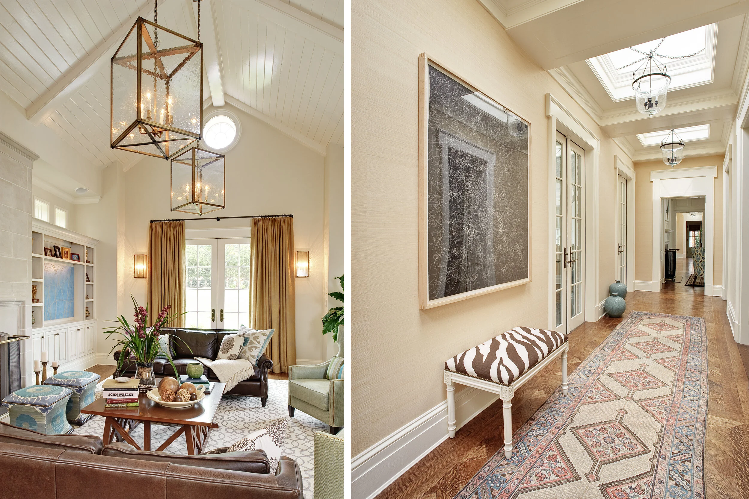 We designed a light-filled gallery that connects the original part of the home to the new, transitional-traditional side of it, which is barely visible from street view. The new section features an open kitchen, a spacious family room, and an oft-used screened-in porch. We honored the home’s history while reimagining its future, with extra square footage designed to perfectly fit the clients’ needs. The result is a marriage of old and new that feels at once classic, fresh, and timeless.